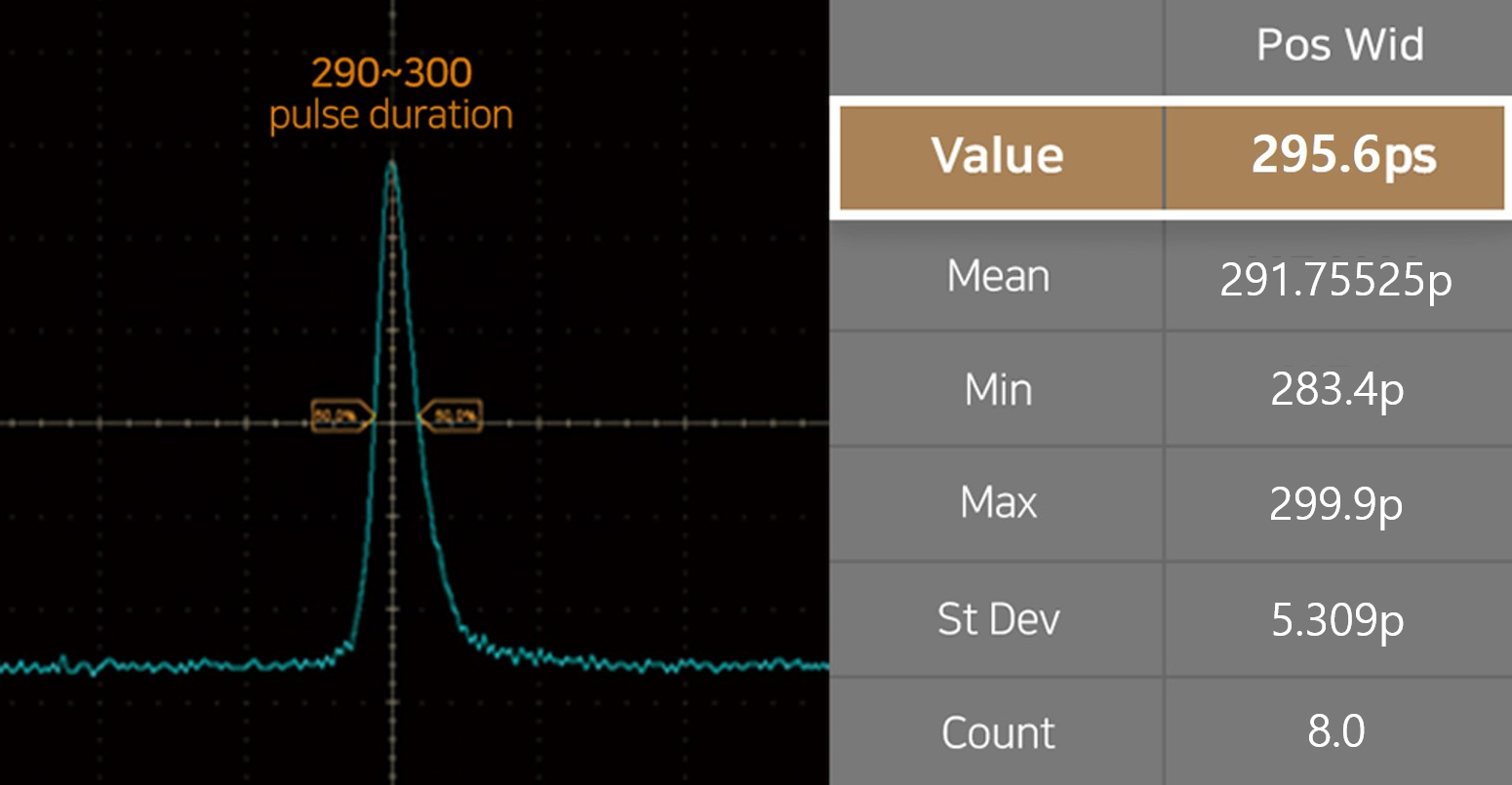 피코하이는 안정적인 300 Picosecond Pulse Duration을 구현합니다.